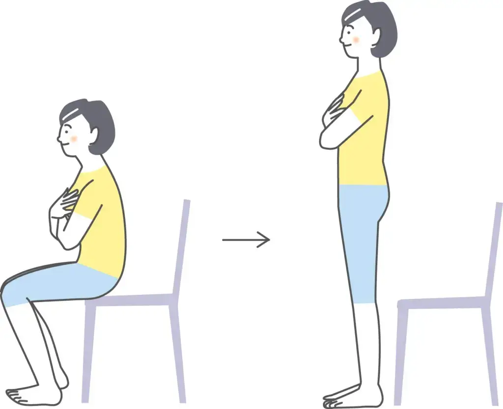 イスからゆっくり立ち上がる・座る動作を繰り返す運動。