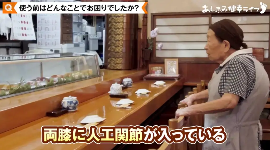 95歳で江戸前寿司店を営むおくずみみちこさんのお悩みは、「歩く機会が少ない」こと。