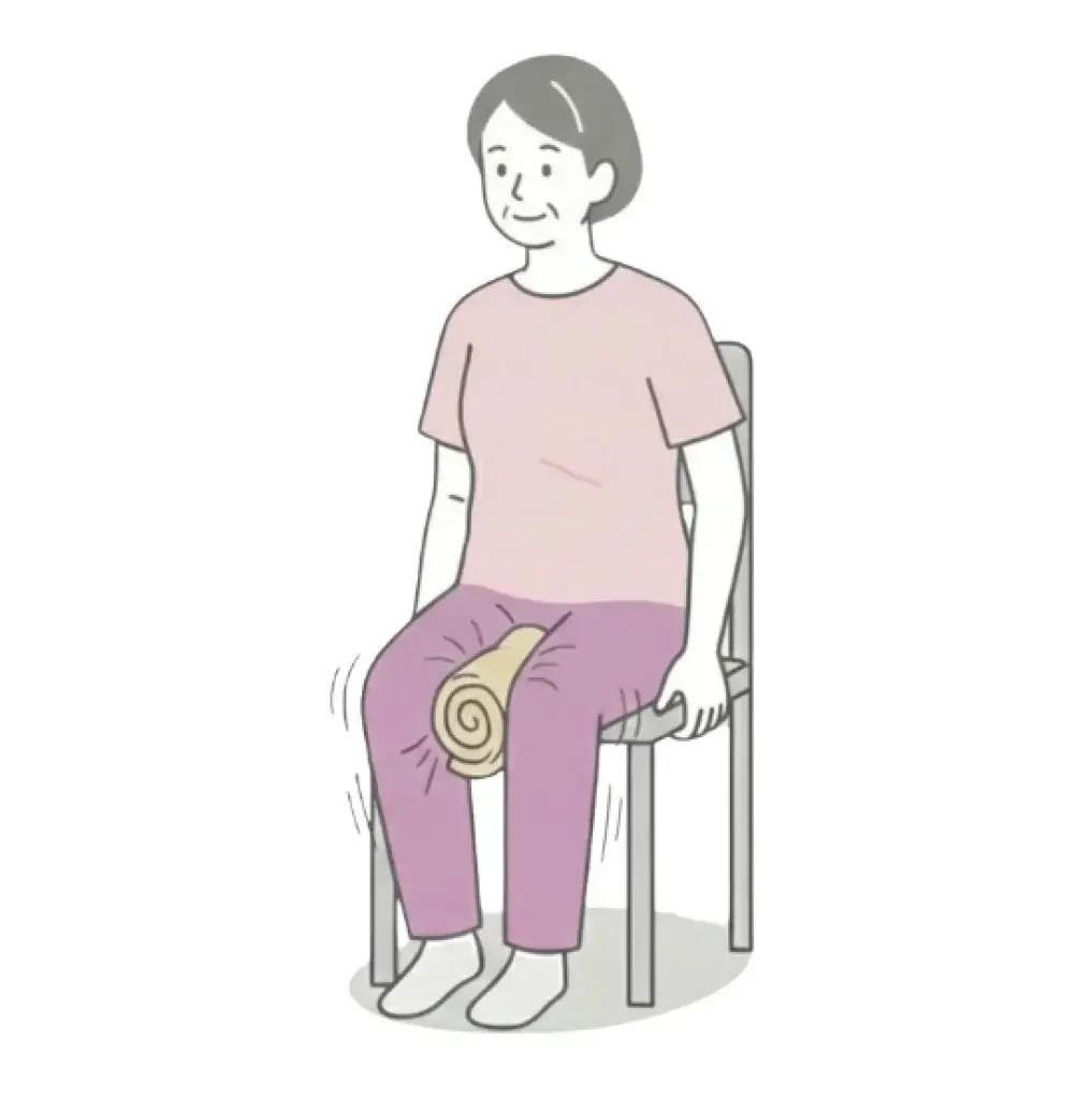 ひざの間にクッションや丸めたタオルを軽く挟みます。
