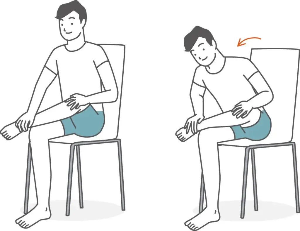 ※足を組む姿勢がつらい場合は、足首を太ももに乗せず、両足を床につけたまま骨盤を前後に小さく動かすだけでも効果があります。