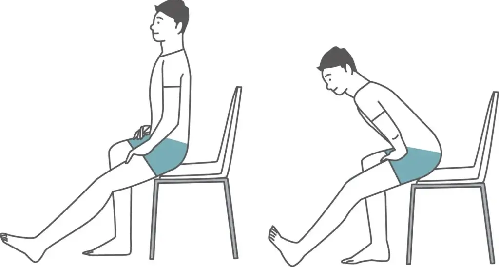 1.椅子に浅く腰かけ、背すじを軽く伸ばします。