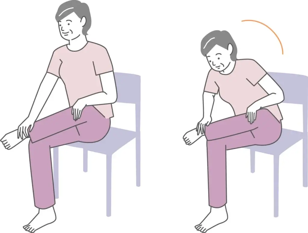 背中を丸めず、無理に深く倒さないようにしましょう。