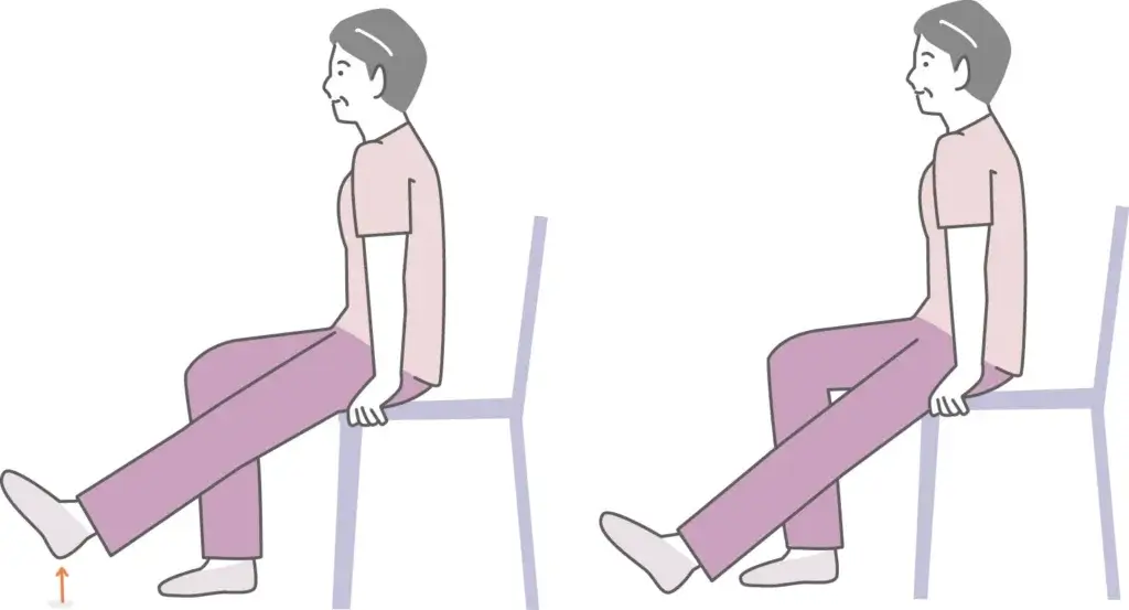 1.イスに座り、片脚を前に伸ばして浮かせる