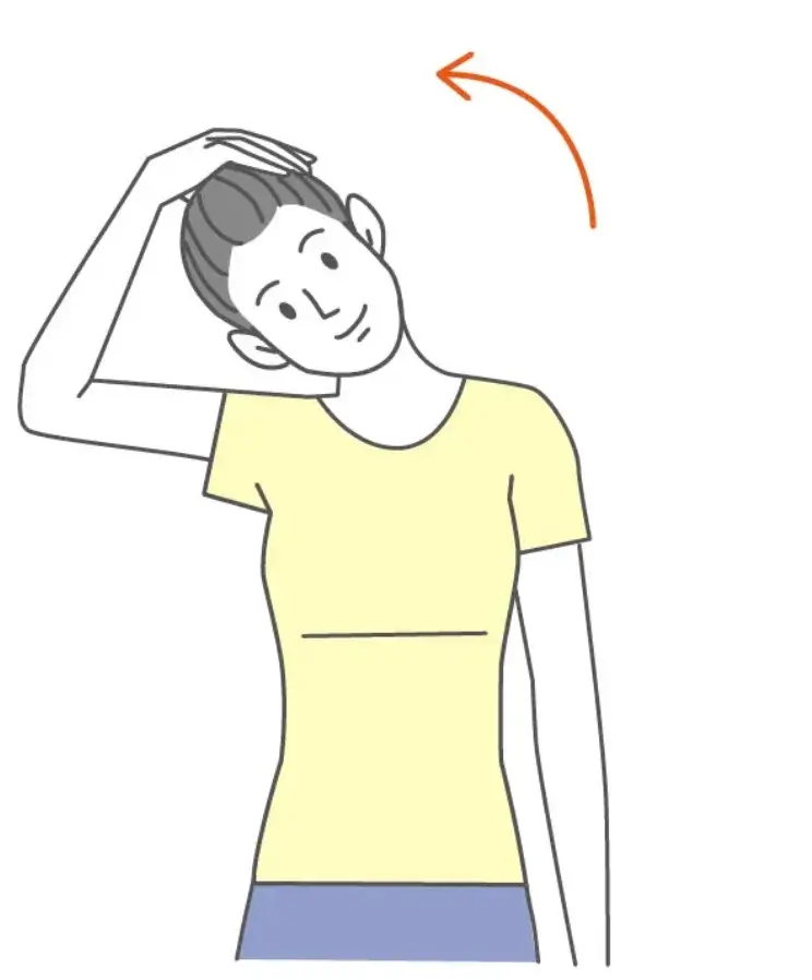 2.片手で頭を持ち、ゆっくりと首を右に倒す