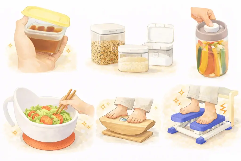こうしたアイテムがあると、無理なく調理しやすくなります。