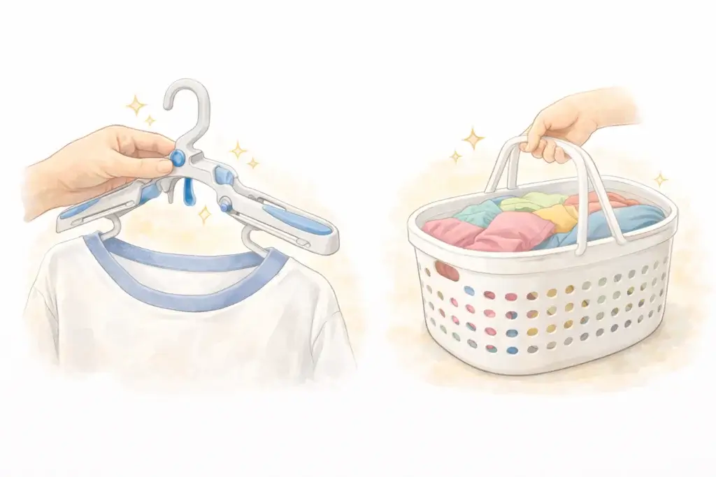 洗濯は、持つ・干す・取り込むといった動作が続きます。